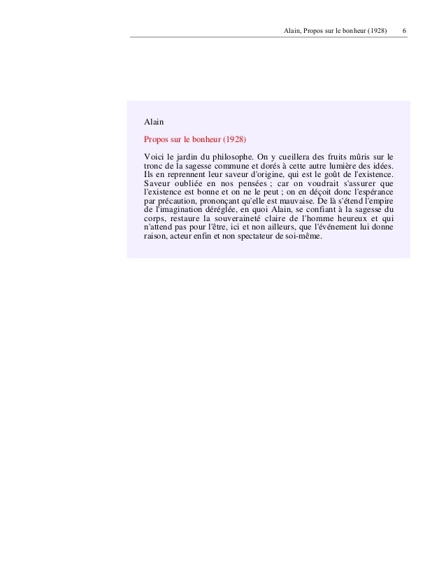 Alain Propos Sur Le Bonheur